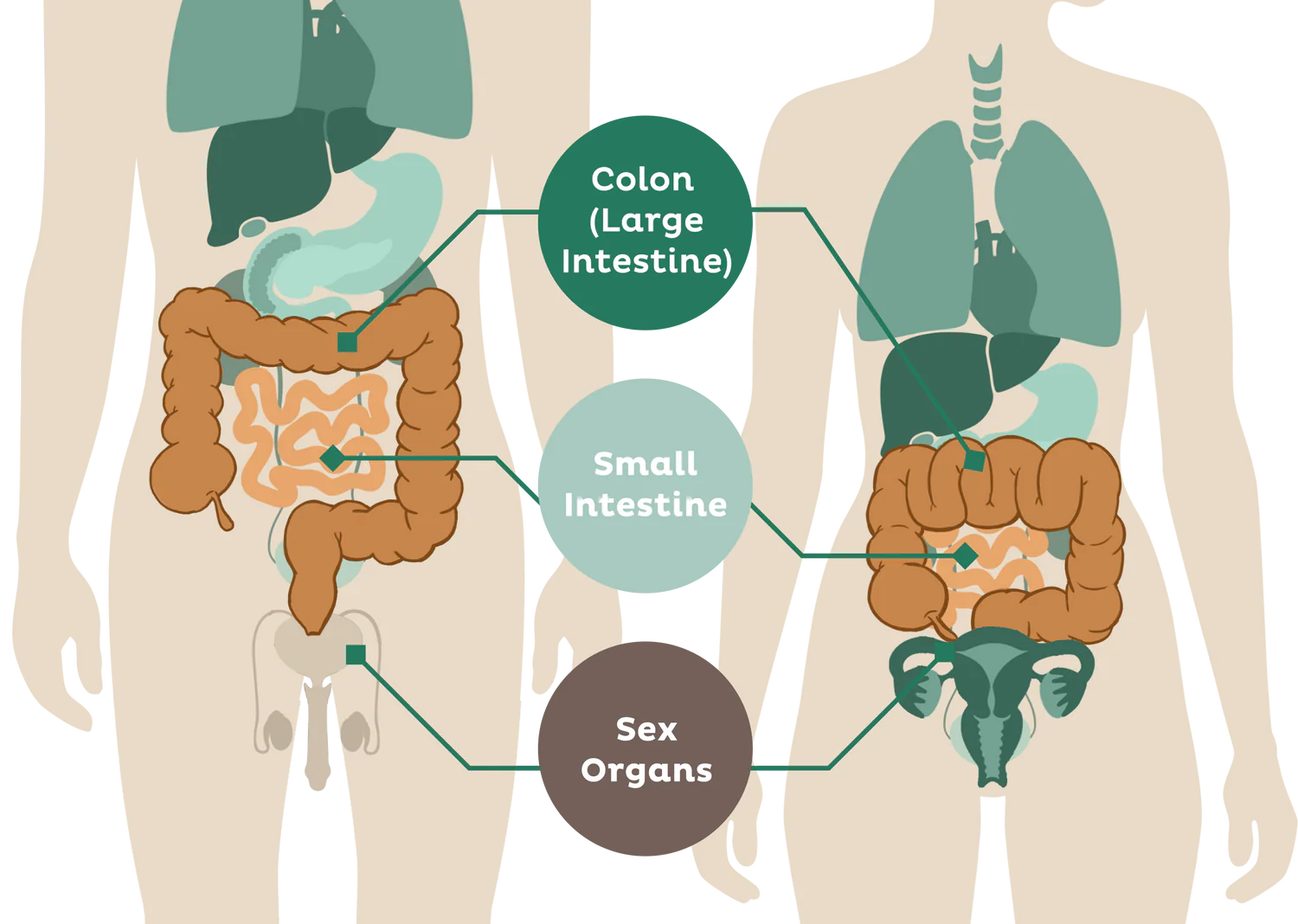 Sex-related features in the brain cause women's and men’s guts to behave differently. Research by Dr. Tanja Babic at Penn State College of Medicine has shown that the nerve cells that control the movement of food through the intestines are slower and more sluggish in women than in men. Research has also found that women are 6 times more likely to suffer digestive upsets, and these problems increase over time as we age.